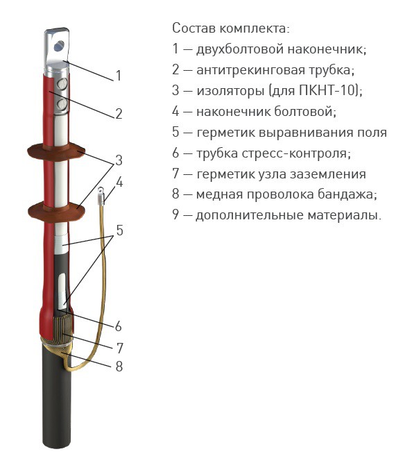 Муфты кабельные концевые 1 ПКВТ 10 предназначена для оконцевания одножильного кабеля с изоляцией из сшитого полиэтилена на напряжение до 10кВ для внутренний и наружной установки.